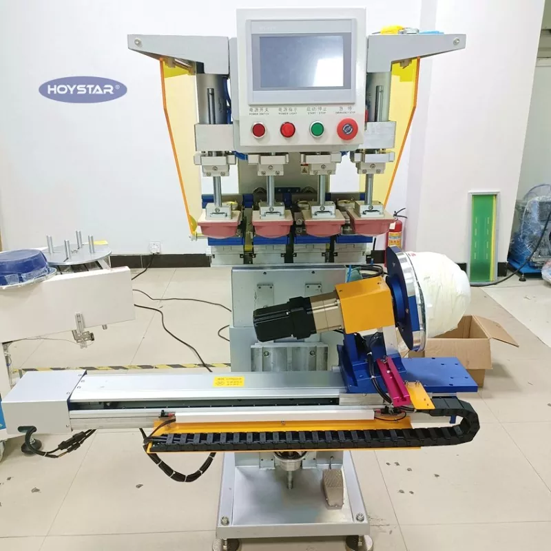 တရုတ်နိုင်ငံရှိ ထုတ်လုပ်သူနှင့် ရောင်းချသူများထဲမှ တစ်ခုဖြစ်သည့် Dongguan Hoystar Machinery Co., Ltd. မှ စိတ်ကြိုက် 4 ရောင်စုံ Pad ပုံနှိပ်ခြင်းစက်ကို စျေးဝယ်ပါ။ ဤ HOYSTAR 4 Colour Pad Printing Machine သည် PLC touch screen control panel ဖြင့် လည်ပတ်ရလွယ်ကူသည်။ ဤစက်တွင် အလိုအလျောက် လှည့်ပတ်ပုံနှိပ်ခြင်းအတွက် ဆာဗာမော်တာထိန်းချုပ်မှုပါရှိပြီး ခမောက်၏ 1 ခြမ်း၊ 2 ဘက် သို့မဟုတ် 4 ဘက်ခြမ်းတွင် ပရင့်ထုတ်ရန် ရွေးချယ်မှုများကို ပေးဆောင်သည်။ အလုပ်စားပွဲအား ဘယ်/ညာ မောင်းနှင်ထားပြီး၊ rotary angel၊ ထုတ်ကုန်အမြင့်များကို ချိန်ညှိနိုင်သည်။ ပုံနှိပ်စက်တစ်ခုစီသည် လွတ်လပ်စွာချိန်ညှိနိုင်ပြီး သီးခြားသတ်မှတ်နိုင်သည်။