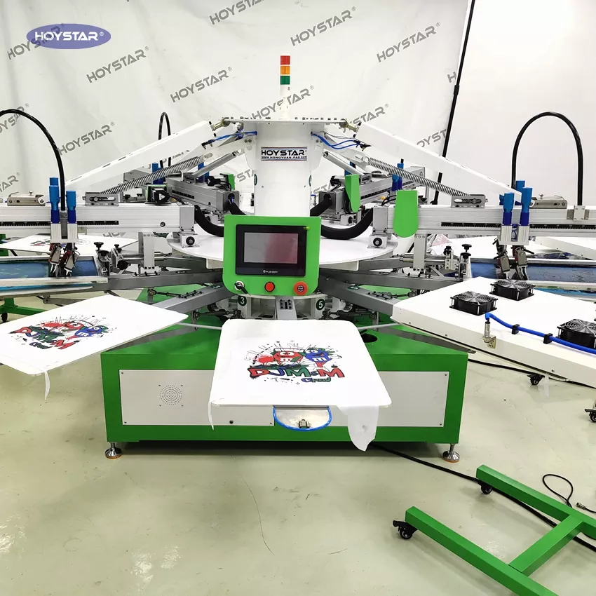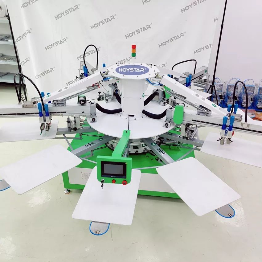 ဤ HOYSTAR 4 ရောင်စုံ T Shirt အထည်အလိပ်ပုံနှိပ်ခြင်း စခရင်ပုံနှိပ်ခြင်းစက်သည် ပုံနှိပ်စက်လုပ်ငန်းအတွက် အထူးဒီဇိုင်းထုတ်ထားသည်။ ဉာဏ်ရည်ထက်မြက်သော မိုက်ခရိုပရိုဆက်ဆာ၊ ထိတွေ့မျက်နှာပြင်နှင့် မော်တာမောင်းနှင်သည့်စနစ်တို့ တပ်ဆင်ထားသောကြောင့် ပုံနှိပ်ခြင်းတည်ငြိမ်မှုနှင့် အရောင်မှတ်ပုံတင်ခြင်းခံနိုင်ရည်အား ±0.1 မီလီမီတာအတွင်း သိသိသာသာ မြှင့်တင်ပေးကာ ပုံနှိပ်တိကျမှုနှင့် လိုက်လျောညီထွေရှိမှုကို သိသိသာသာ တိုးတက်စေသည်။ တီရှပ်၊ အဝတ်အစား၊ တံဆိပ်များနှင့် အထည်စသည့် အမျိုးမျိုးသော ပုံနှိပ်စက်များအတွက် သင့်လျော်သည်။ ဤအလိုအလျောက် မျက်နှာပြင်ပရင်တာသည် တိကျမှုနှင့် ထိရောက်သော ပုံနှိပ်ထုတ်လုပ်မှုအတွက် သင့်အတွက် အကောင်းဆုံးဖြေရှင်းချက်ဖြစ်သည်။