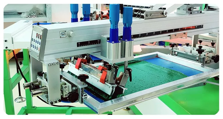4 Colour T Shirt Textile Printing Screen Printing Machine သည် PLC နှင့် touch screen panel ပါရှိသော၊ အသုံးပြုသူအသစ်များအတွက်ပင် လုပ်ဆောင်ချက်သည် အလိုလိုသိသာပါသည်။ မျက်နှာပြင်သည် ပုံနှိပ်ခြင်းအမြန်နှုန်း၊ ပုံနှိပ်မုဒ် စသည်တို့ကို လွယ်ကူစွာ ချိန်ညှိနိုင်စေပါသည်။