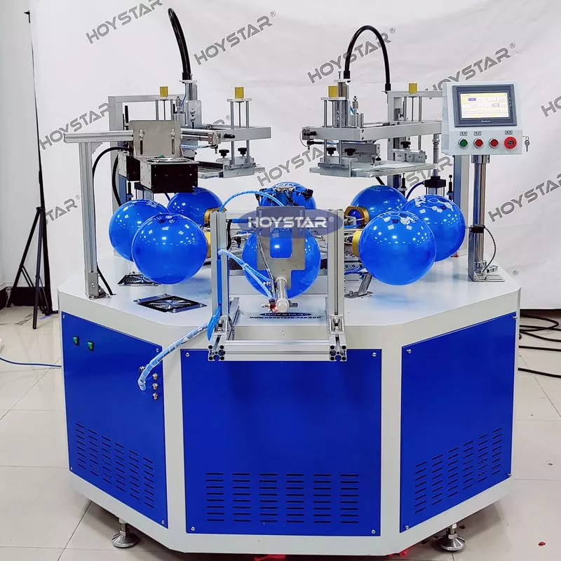 ပရော်ဖက်ရှင်နယ် ထုတ်လုပ်သူနှင့် ပေးသွင်းသူအနေဖြင့် HOYSTAR Automatic 2 Color Balloons Screen Printing Machine ကို စေးပူဖောင်းများပေါ်တွင် ပုံနှိပ်ရန်အတွက် ဒီဇိုင်းထုတ်ထားသည်။ rotary worktable၊ အလိုအလျောက်မှုတ်ခြင်း၊ အလိုအလျောက်လှည့်ခြင်း၊ အလိုအလျောက် အခြောက်ခံခြင်း၊ အလိုအလျောက် ဖြုတ်ချခြင်း လုပ်ဆောင်ချက်များ တပ်ဆင်ထားပါသည်။ PLC ထိတွေ့မျက်နှာပြင်ထိန်းချုပ်မှု၊ ဘေးကင်းလုံခြုံပြီး အလိုလိုသိသောလုပ်ဆောင်ချက်အတွက် အသုံးပြုသူ-ဖော်ရွေသော မျက်နှာပြင်။ စက်သည် မြန်နှုန်း၊ တိကျမှုနှင့် အသုံးပြုရလွယ်ကူမှုတို့ကို ပေါင်းစပ်ထားသည်။