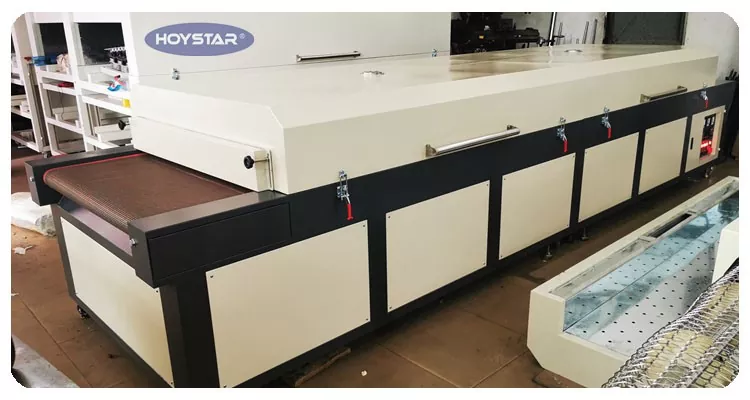 တရုတ်နိုင်ငံရှိ ပရော်ဖက်ရှင်နယ်ထုတ်လုပ်သူအနေဖြင့် ကျွန်ုပ်တို့သည် သင့်အား Conveyor Belt ဖြင့် စွမ်းဆောင်ရည်မြင့် HOYSTAR ကြီးမားသော အနီအောက်ရောင်ခြည်ခြောက်စက်ကို ပေးဆောင်လိုပါသည်။ အထည်အလိပ်များ၊ အလံများ၊ နဖူးစည်းများ၊ အလူမီနီယံစာရွက်များ၊ ဖန်၊ စက္ကူနှင့် ပလတ်စတစ်များကဲ့သို့သော ထုတ်ကုန်အမျိုးမျိုးကို အခြောက်ခံရန်အတွက် သင့်လျော်ပြီး—စခရင်ပုံနှိပ်ခြင်း၊ ပန်းချီဆွဲခြင်း၊ အပူညှိပေးသည့် ကော်ပလီကေးရှင်း၊ အင်ဂျတ်ပုံနှိပ်ခြင်းနှင့် အခြားအရာများကဲ့သို့သော လုပ်ငန်းစဉ်များပြီးနောက်။