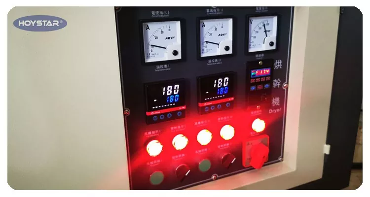စက်တွင် လည်ပတ်မှုဘောင်တစ်ခု တပ်ဆင်ထားသည်။ သင်၏အခြောက်ခံမှုလိုအပ်ချက်များနှင့်ကိုက်ညီရန် အခြောက်ခံအပူချိန်ကို လွတ်လပ်စွာ ချိန်ညှိနိုင်ပါသည်။